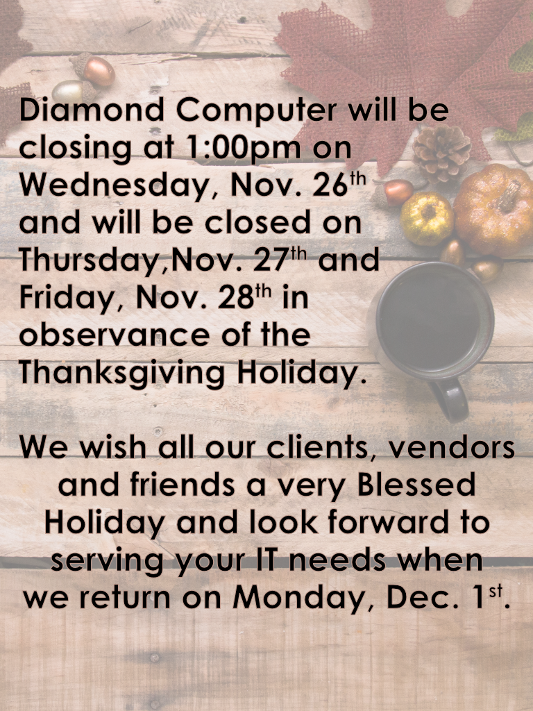 When Diamond Computer was first founded in early 1997, we were driven by one guiding ideal; small to mid-sized businesses should have the advantage of comprehensive, scalable and targeted technology solutions which historically had only been available to larger companies. By combining meticulously chosen Hardware and Software with a complement of Network Design, Project Management and Managed Services, Diamond Computer provides our customers with the finest Solutions and Support available at prices that meet the budget requirements of smaller businesses.